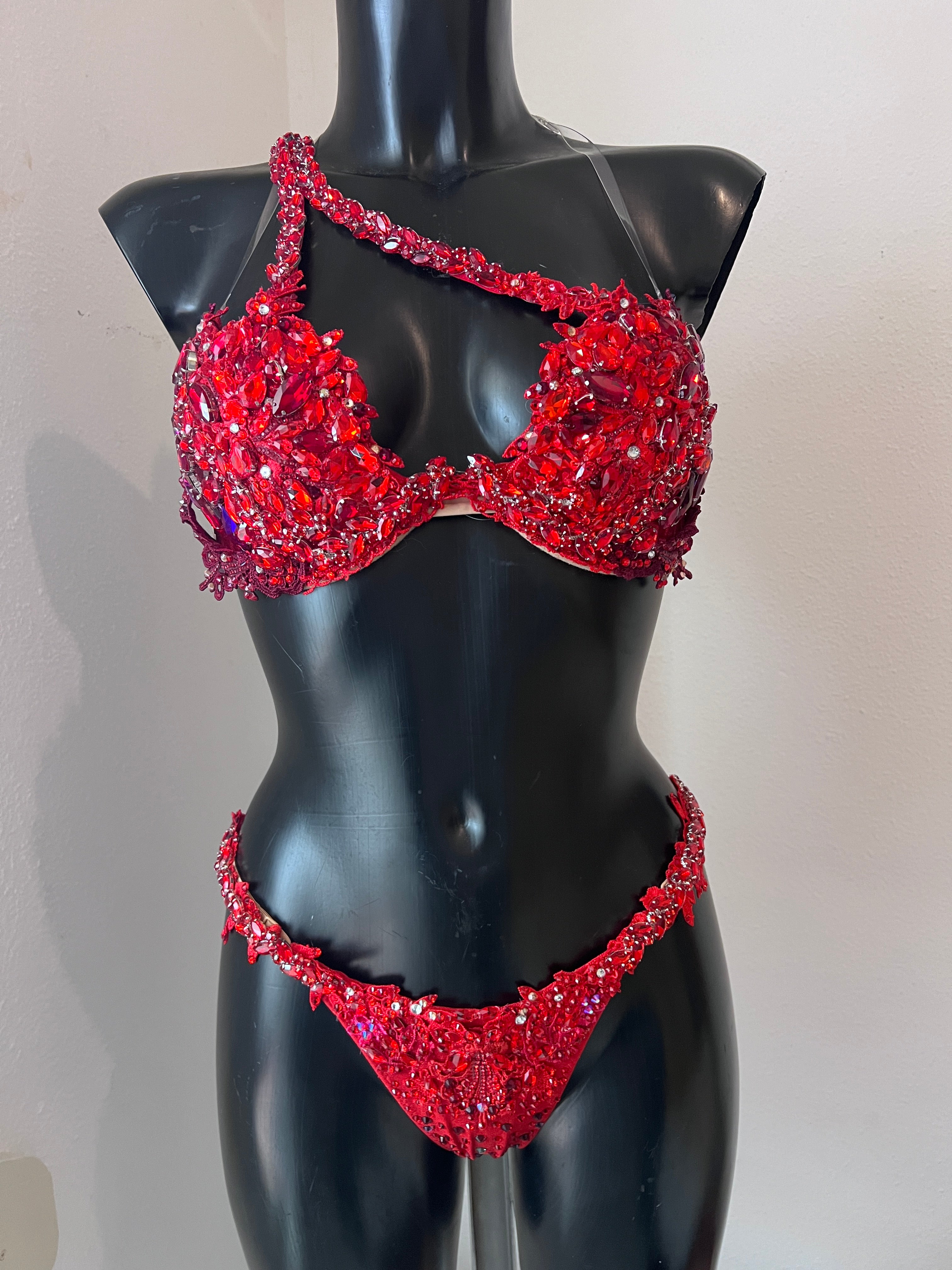 Sadie Welder - Red and Burgundy Crystal Bikini