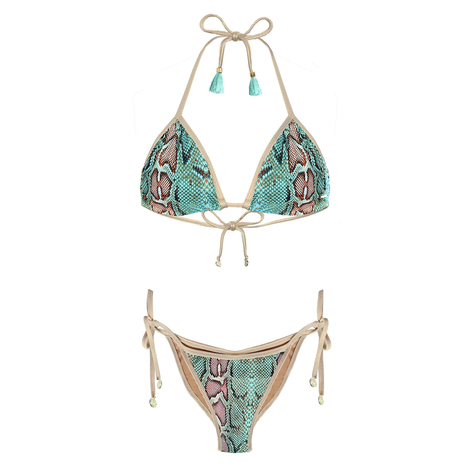 Ibiza Turquoise Snake Print Bikini with Gold Trim